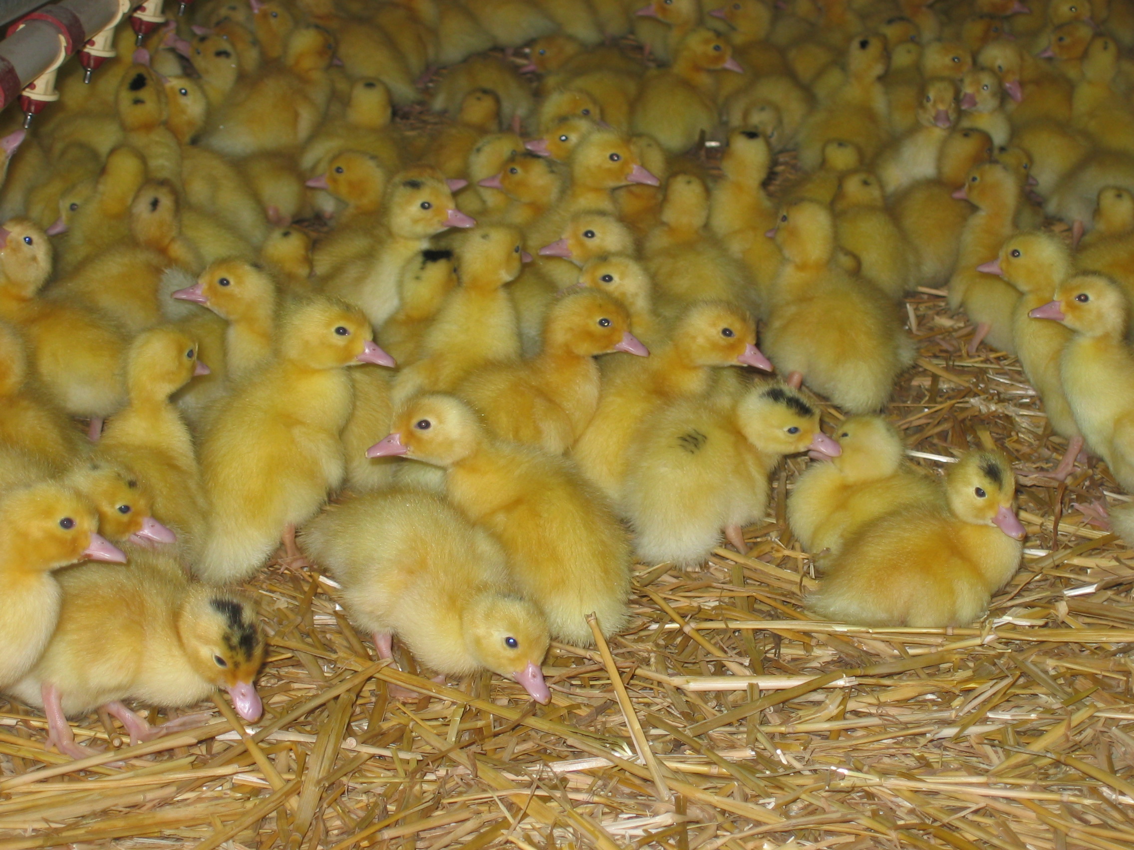 Pendant leurs 15 premiers jours, les canetons démarrent leur vie dans une poussinière bien douillette et chauffée à 25°C pour progressivement s’aventurer dans un parc enherbé. À un mois, ils accéderont à un bâtiment plus grand, bien isolé, aéré, paillé tous les jours avec toujours les possibilités de sortir à souhait dans les parcs .